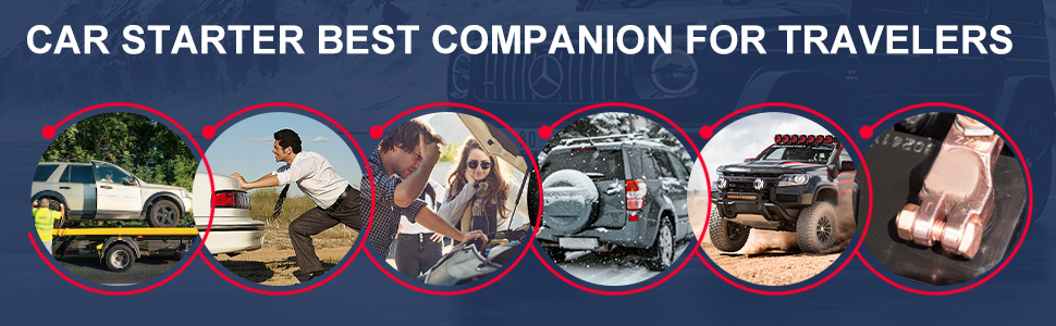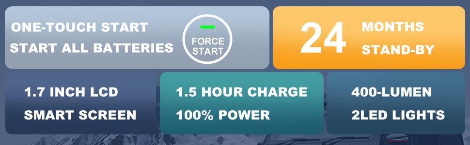 A peak current of 3000A enables the 3000A Car Battery Jump Starter to jump-start 12V vehicles with engines up to 7.0L Gas and 5.5L Diesel. Perfect for cars, trucks, motorcycles, boats, and RVs, it provides reliable performance in extreme temperatures.