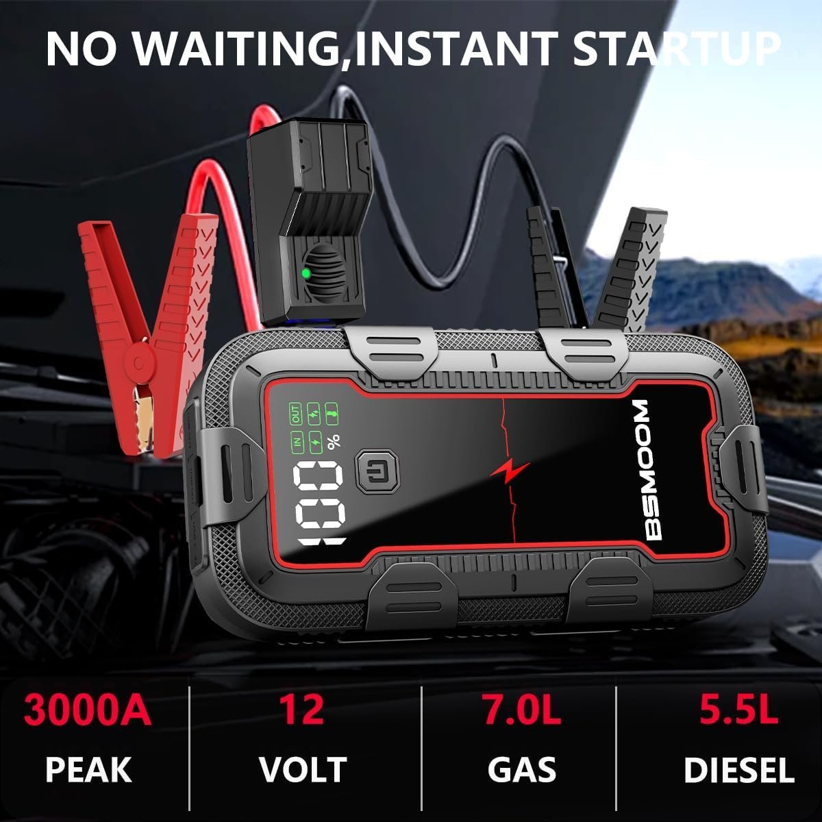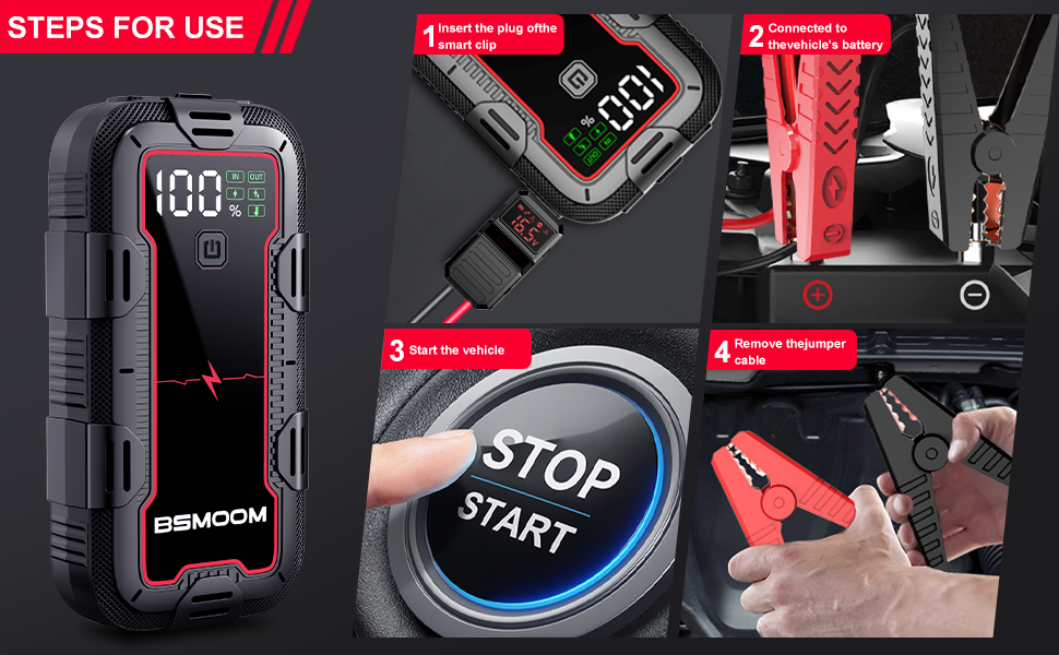 Este arrancador de bater¨ªa BSMOOM es impresionante, arranc¨® mi coche sin problemas en segundos.