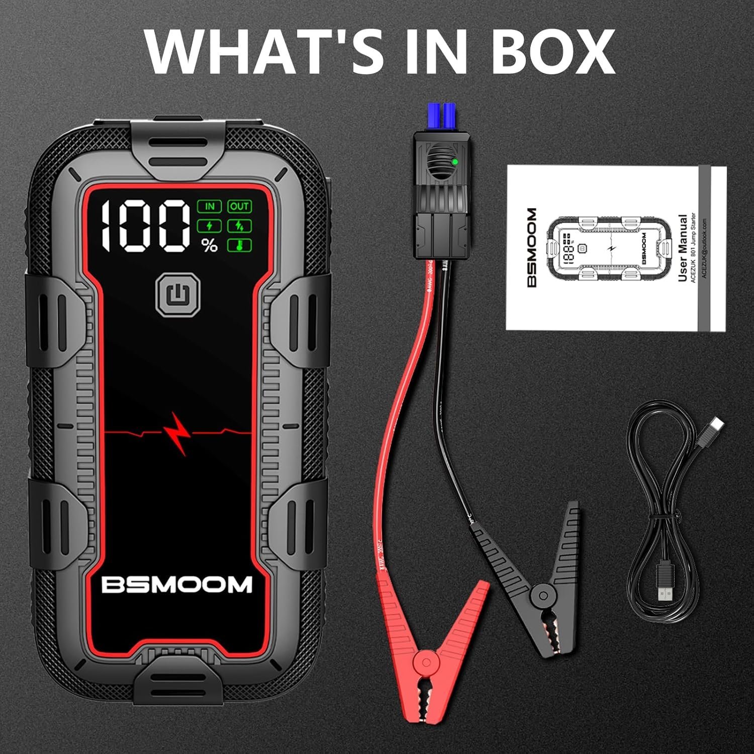 30 reviews for BSMOOM Arrancador de batería de coche de 12V, paquete de refuerzo de batería automático de pico de 6000A, Banco de energía, caja de salto, Con luz LED, pantalla LCD