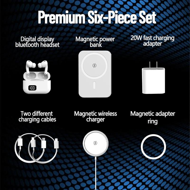 6-in-1 Magnetic Charging & Bluetooth Headset Set Experience ultimate convenience with this versatile 6-in-1 set, designed to meet all your charging and audio needs.