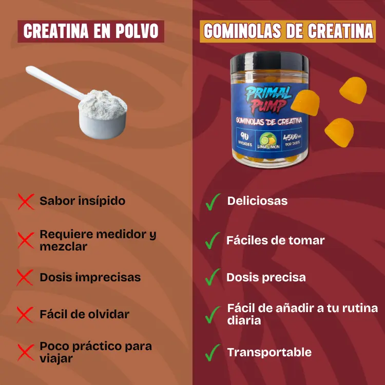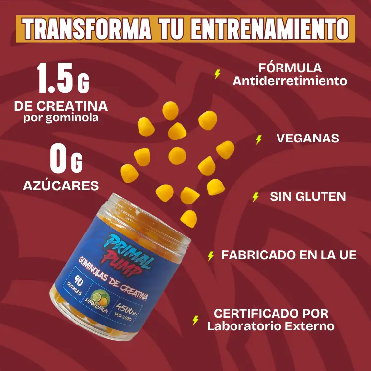 Las gominolas de creatina de Primal Pump son un aliado importante en mis entrenamientos.