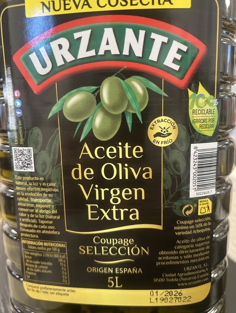 Fresco y delicioso! El aceite de 5 litros llega bien empaquetado, y su sabor a oliva es intenso pero equilibrado. Muy bueno.